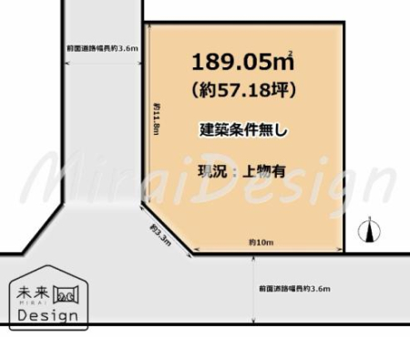 | 現況/引渡し | 更地/即時 | 接道状況 | 接道: 南 10.8m 公道 道路幅: 4.2m |