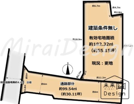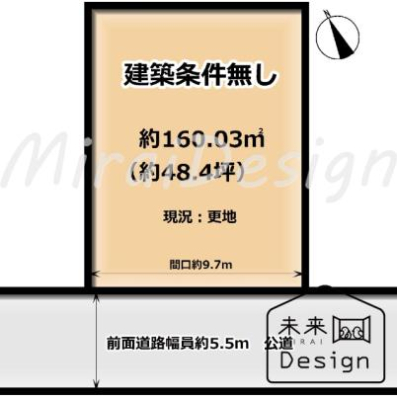 | 現況/引渡し | 更地/相談 | 接道状況 | 接道: 南西 6.7m 道路幅: 5.4m |
